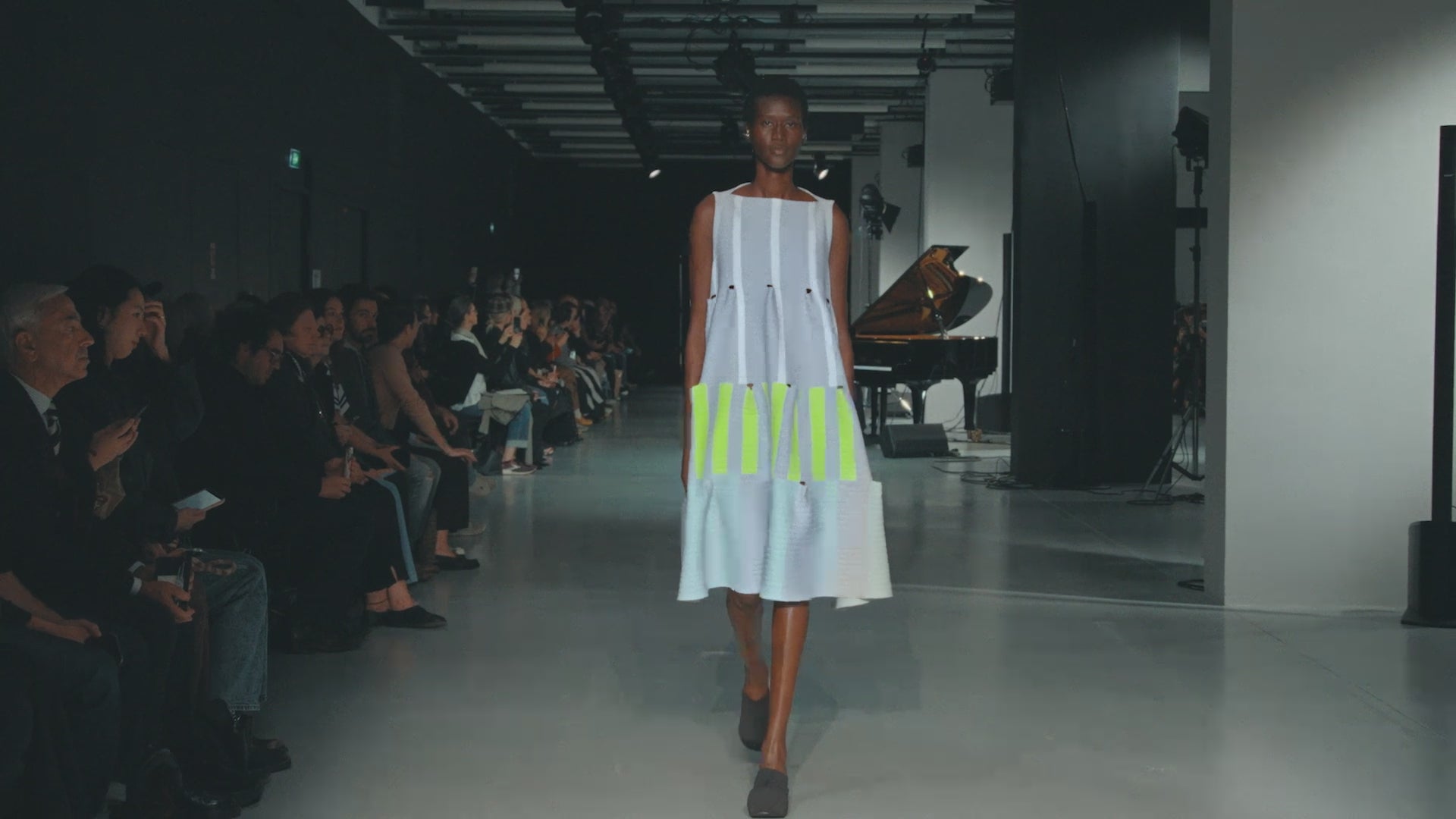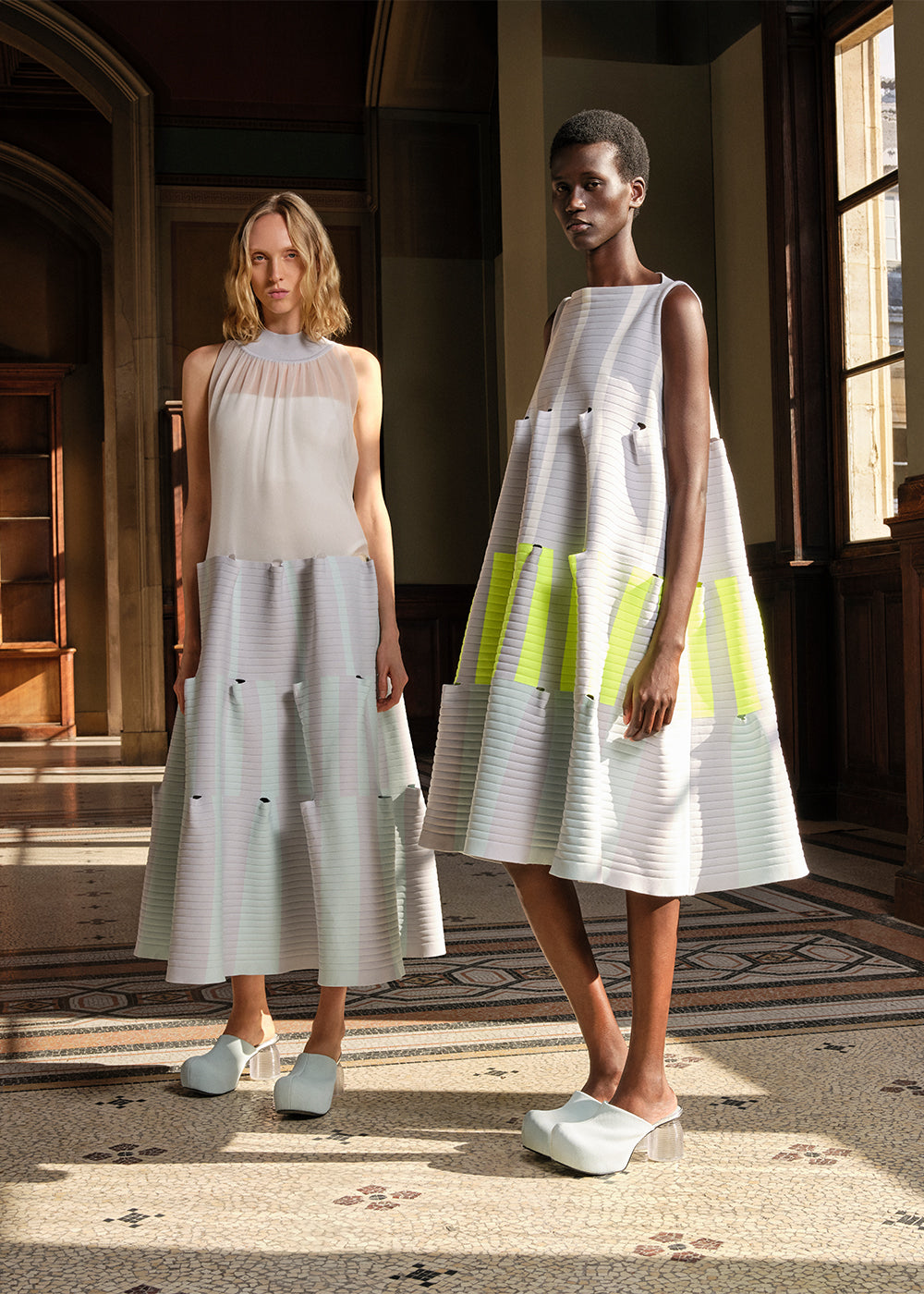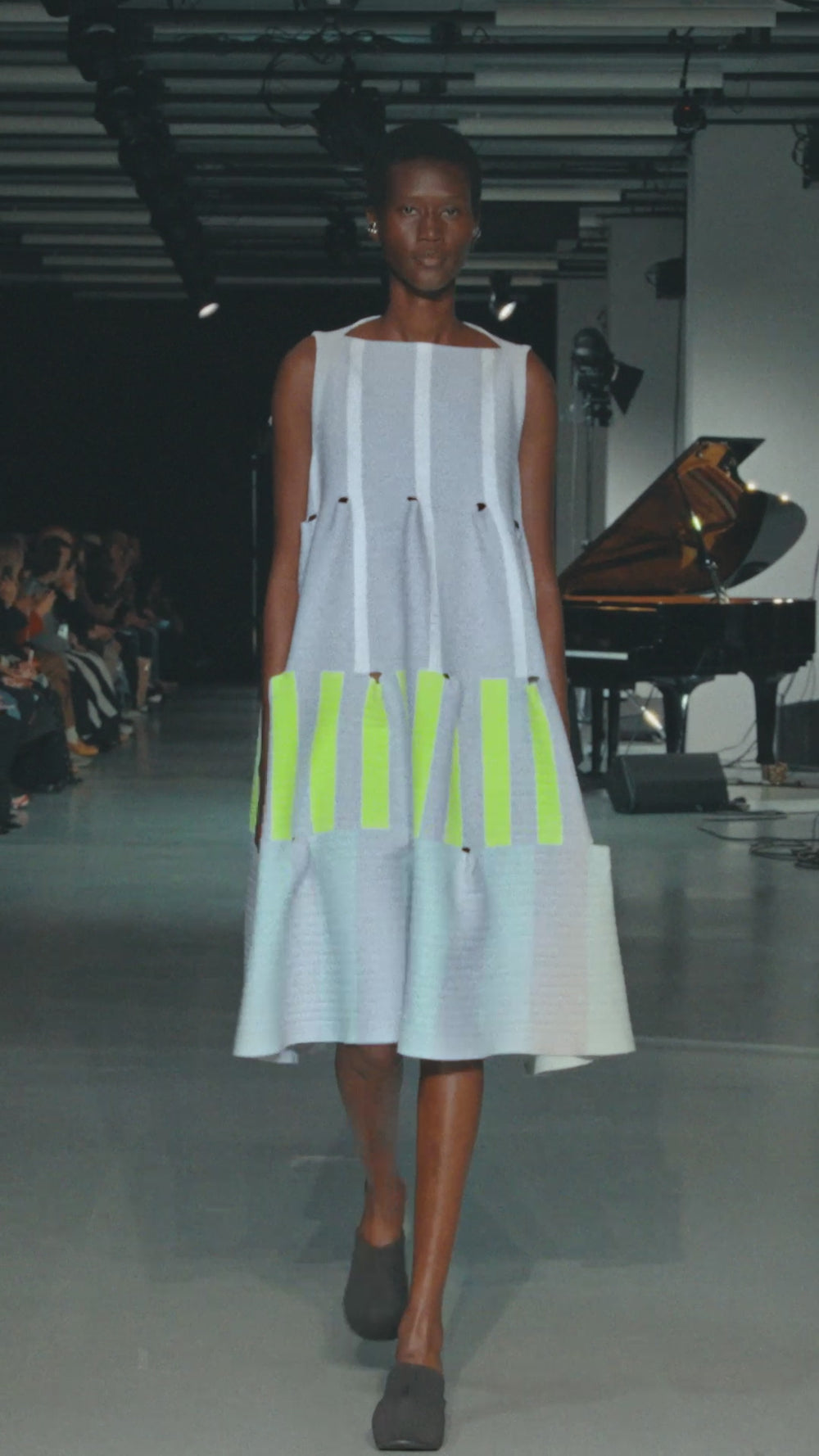 TERRACED LUCENT SLEEVELESS DRESS