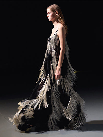 A signature design feature of CFCL is applying a thin rib that is seamed straight on the center back. CFCL has two reasons why they apply this design feature to their minimalist clothing.