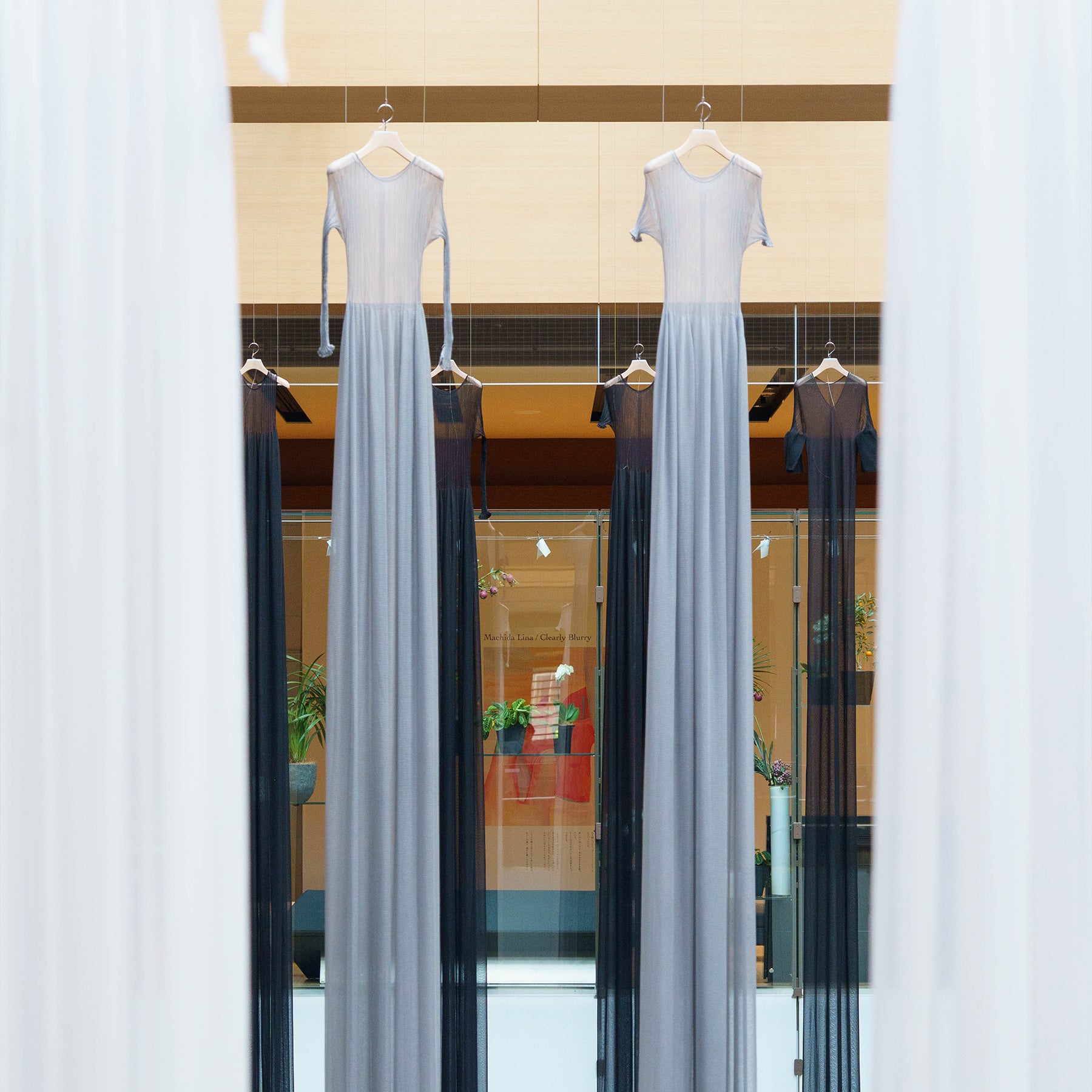 POTTERY LUCENT DRESS, a special piece celebrating CFCL’s 5th anniversary since its founding in 2020. It's a striking installation showcasing CFCL's iconic dress, reimagined as an extraordinary 9-meter-long artwork. Light as air and translucent, the knit dress blends seamlessly into the Tokyo Midtown space in Roppongi, capturing the soft glow of spring.